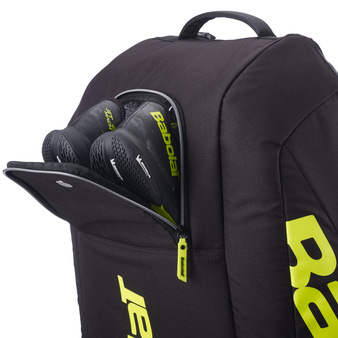 Borsa tennis porta racchette Babolat Pure Aero 2026. Dalle grandi dimensioni può immagazzinare fino a 12 racchette, scomparti totalmente isotermici. La sua forma e rigidità permette il posizionamento in verticale.